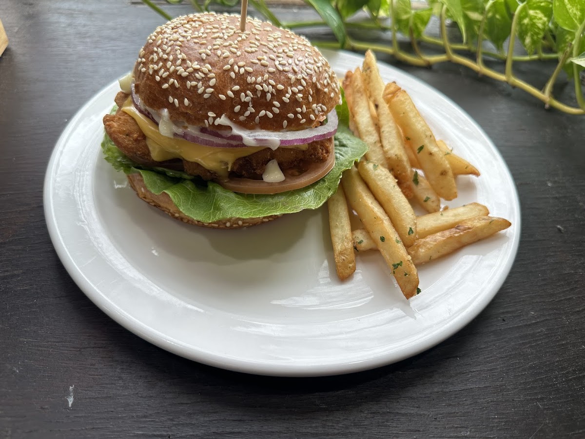 Grilled chicken, Swiss cheese, avocado, lettuce, mayonnaise and tomatoes Served with fries